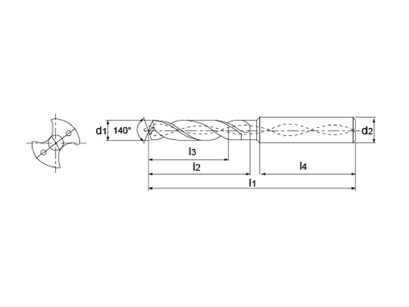 產(chǎn)品編碼 Item code | 刃徑 d1(m7) | 螺紋尺寸 M公制 | 柄徑 d2(h6) | 總長 I1 | 槽長 I2 | 最大切深 I3 | 柄長 I4 |