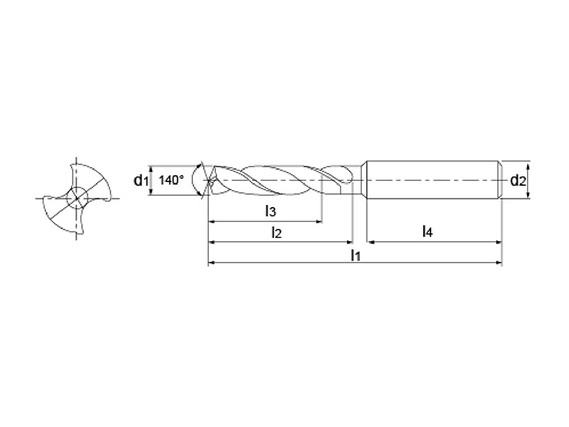 產(chǎn)品編碼 ltem code | 刃徑 d1(m7) | 螺紋尺寸 M公制 | 柄徑 d2(h6) | 總長 I1 | 槽長 I2 | 最大切深 I3 | 柄長 I4 |