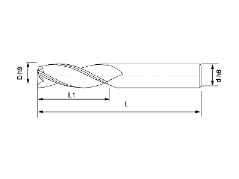刃徑(D h9) | 刃長(L1) | 柄徑(d h6) | 全長(L) | 刃數(shù)(Z) |