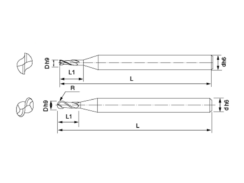 產(chǎn)品編號(hào) ltem code | 刃徑(D h9) | 刃長(zhǎng)(L1) | 柄徑(d h6) | 全長(zhǎng)(L) |