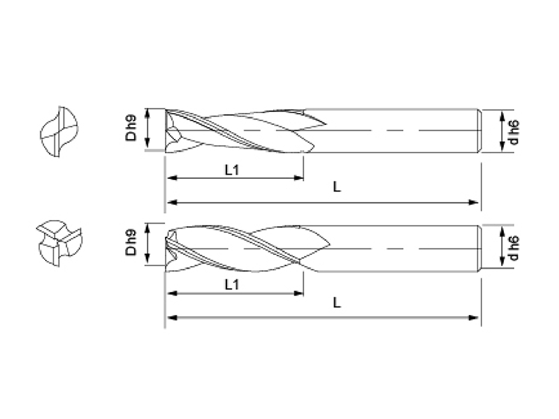 產(chǎn)品編號(hào) ltem code | 刃徑(D h9) | 刃長(zhǎng)(L1) | 柄徑(d h6) | 全長(zhǎng)(L) |
