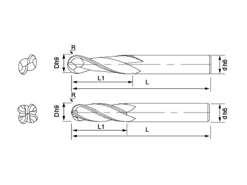 產(chǎn)品編號 ltem code | 刃徑(Dh9) | 刃長(L1) | 柄徑(dh6) | 全長(L) |