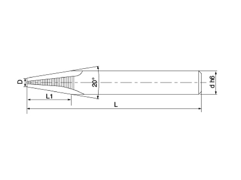 牙距 P 牙型角 a 小徑 D 柄徑 d h6 全長 L
