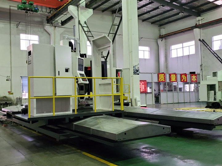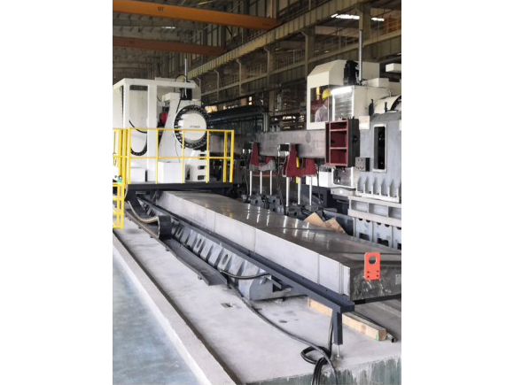 重型卡車和礦用卡車的承載車廂的承載梁,傳統(tǒng)采用分體加工、再依靠工裝進(jìn)行焊接和車廂總裝,存在變形大和上自動組裝線困難的問題;本產(chǎn)品為焊接車梁整體加工的全數(shù)控的雙面臥式加工中心,融合大型零件(12米長)雙面自動化數(shù)控加工技術(shù)、工件自動數(shù)控回轉(zhuǎn)翻身工藝,將環(huán)保準(zhǔn)干式切削等加工理念植入機(jī)床的結(jié)構(gòu)設(shè)計,既解決了分體加工后組焊的變形問題,又為車架的自動化產(chǎn)線提供基準(zhǔn),達(dá)到減員增效和提高自動化的目的。